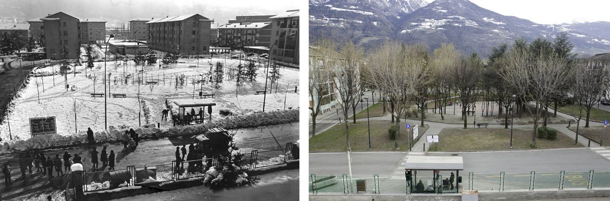 Cartoline dal Villaggio Dora è un progetto di ricerca sui cambiamenti e le trasformazioni degli spazi e dei luoghi ed una riflessione sul senso di Comunità in un quartiere alle porte di Aosta che ha da poco superato cinquant'anni. Iniziando il lavoro mi sono domandato che cosa fosse cambiato dalla nascita del quartiere ad oggi: "Nulla" è stata la risposta.Ovviamente l'urbanizzazione e il paesaggio sociale si sono dilatati, crescendo in maniera del tutto autonoma e slegata, senza tener conto degli interessi di socializzazione e coabitazione dei residenti e delle politiche di governabilità del territorio. E allora, in questi cinquant'anni, qual'è stato il "legante"? Le persone. Sono loro che creano la Comunità perchè essa nasce e sopravvive nel locale, nell'ambito in cui si è nati, ci si è formati e dove si mantengono i legami forti, gli affetti, la cultura. Questo mi ha portato nelle case a sfogliare gli album di famiglia, a "rovistare"nelle vecchie scatole colme di immagini della cosiddetta fotografia intima, quella fotografia che in genere immortala i momenti simbolici della vita familiare, i momenti in cui vogliamo dimostrare il nostro riconoscimento dei legami affettivi e dei successi in società. Questi sono attimi che vogliamo conservare, sia come emozione che come immagine.Il progetto si sviluppa costruendo una continua dicotomia tra passato e presente unendo l'alfa e l'omega della storia alternando in montaggio gli spazi ed i ritratti in maniera che essi non siano più in contrapposizione tra loro ma diventino un soggetto unico e dialogante perché non ci può essere urbanizzazione senza l'uomo ed esso deve essere parte attiva nei processi di trasformazione del proprio territorio.